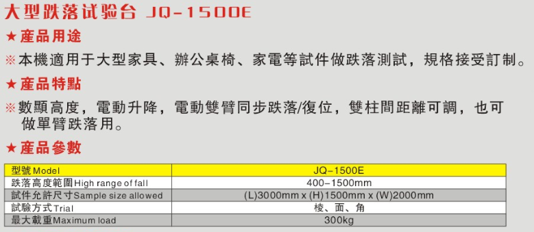 1、跌落高度 : 300—1500mm