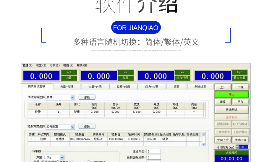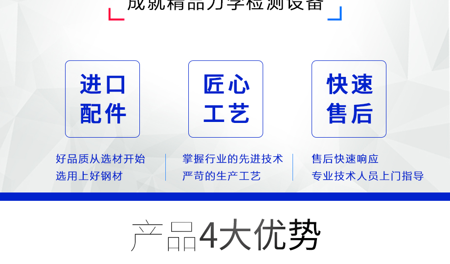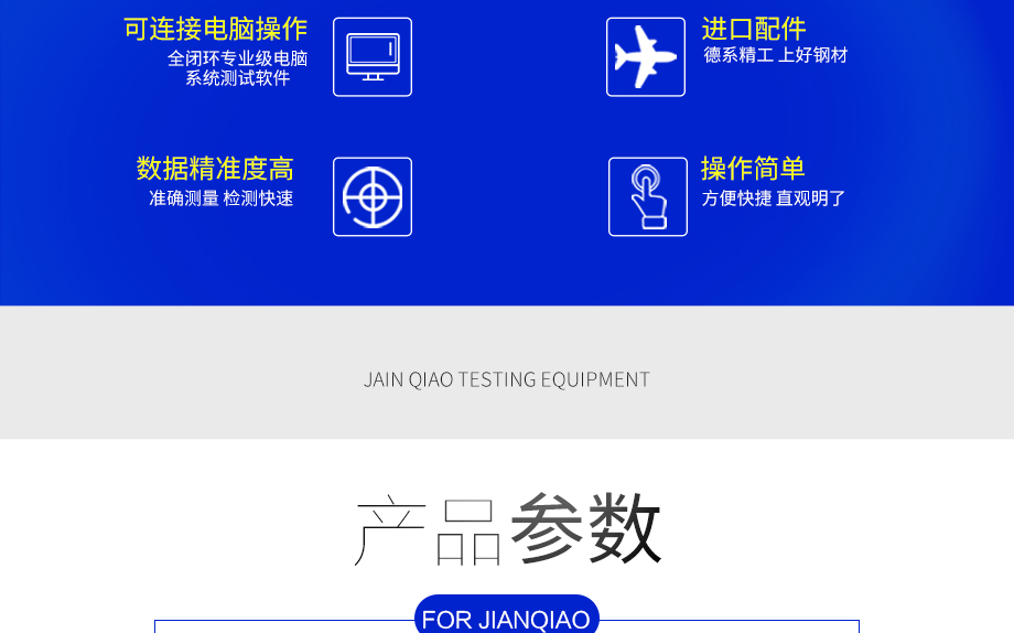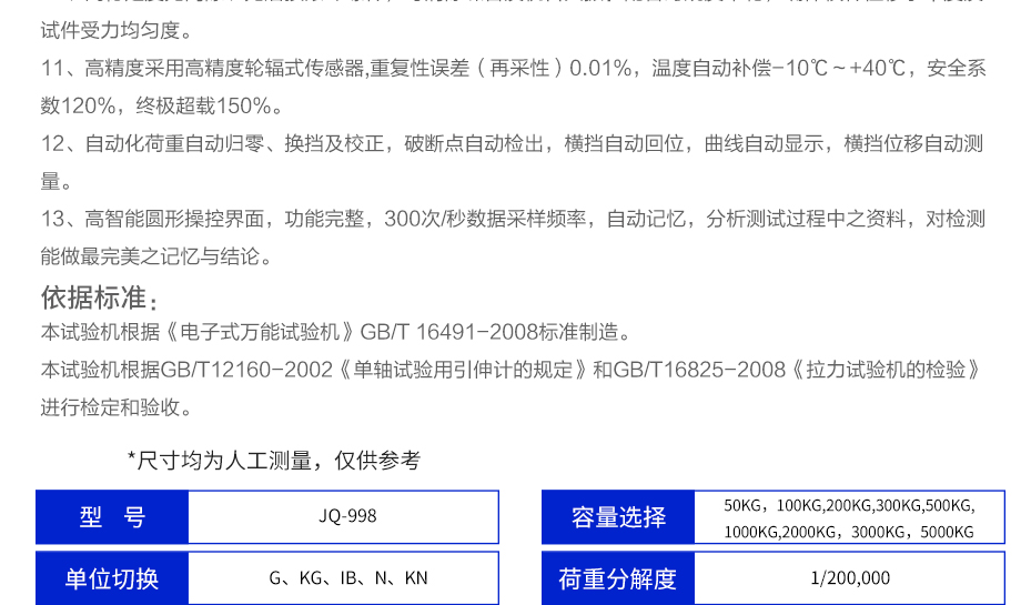 產(chǎn)品型號(hào):JQ-998(高端定制款) 品牌:劍 喬 用途:高端雙柱拉力機(jī)主要測(cè)試原物料、成品、半成品的物理特性,可做抗拉力測(cè)試、抗壓力測(cè)試、抗彎測(cè)試,取得伸長(zhǎng)量、伸長(zhǎng)率、應(yīng)力、應(yīng)變等測(cè)試結(jié)果及測(cè)試資料。
